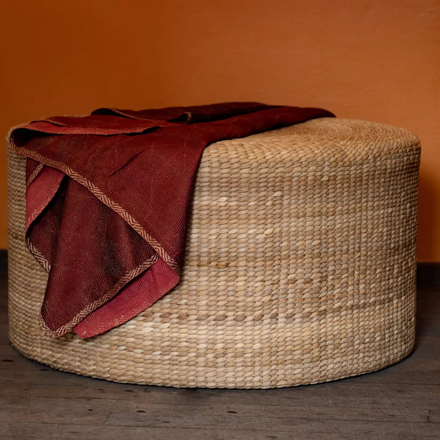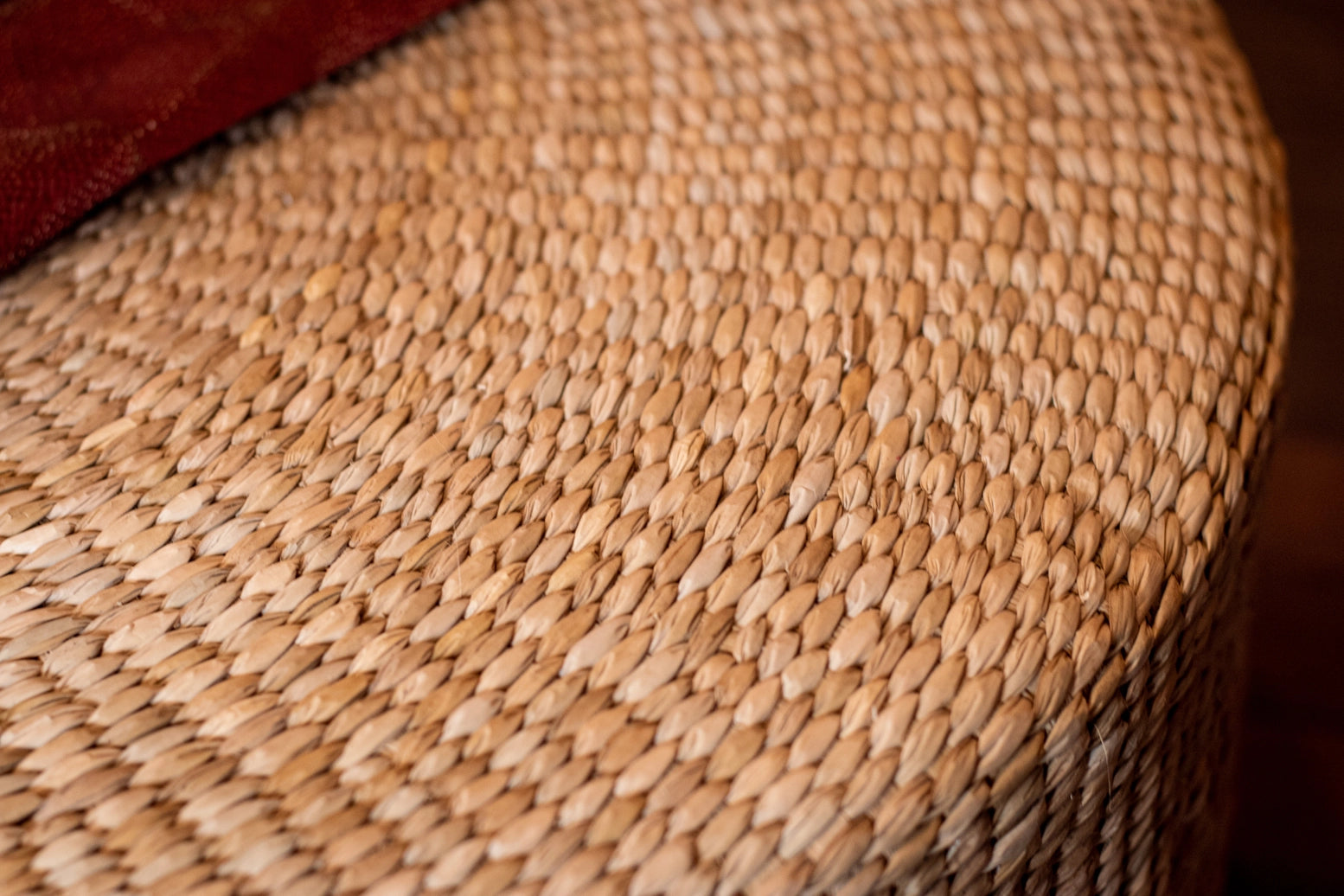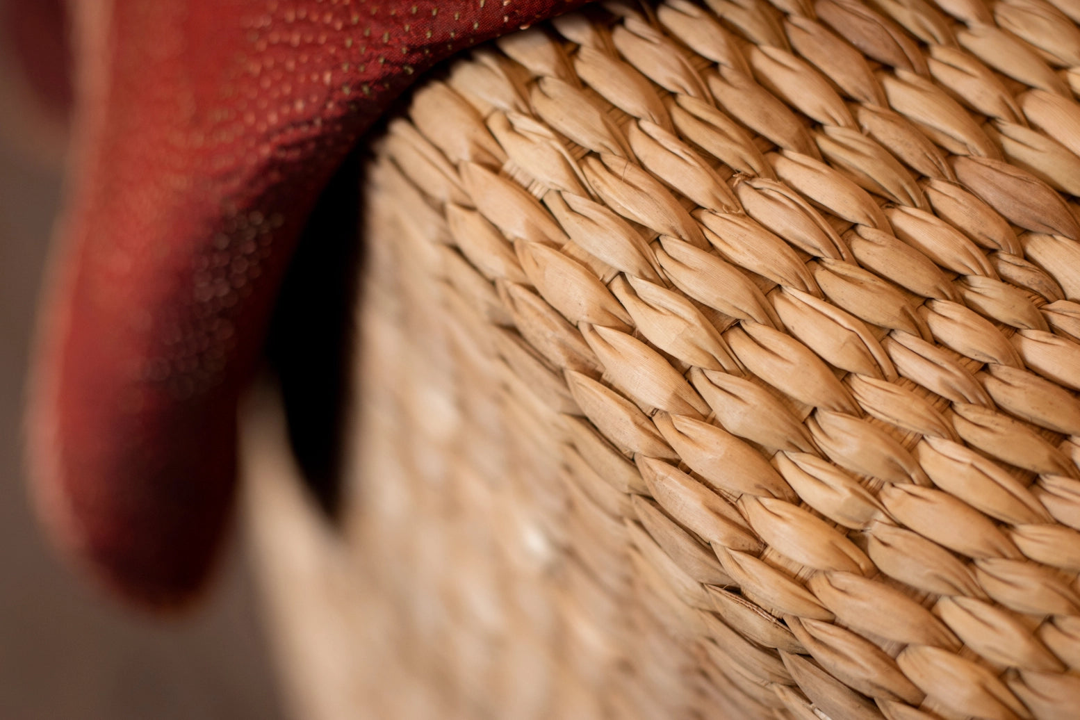 Clara puff er håndvevd i naturlig gress rundt en solid ramme av bambus. Den runde, skulpturelle formen og den tette vevingen gir et rolig og jordnært uttrykk som tilfører varme, tekstur og balanse til rommet.
