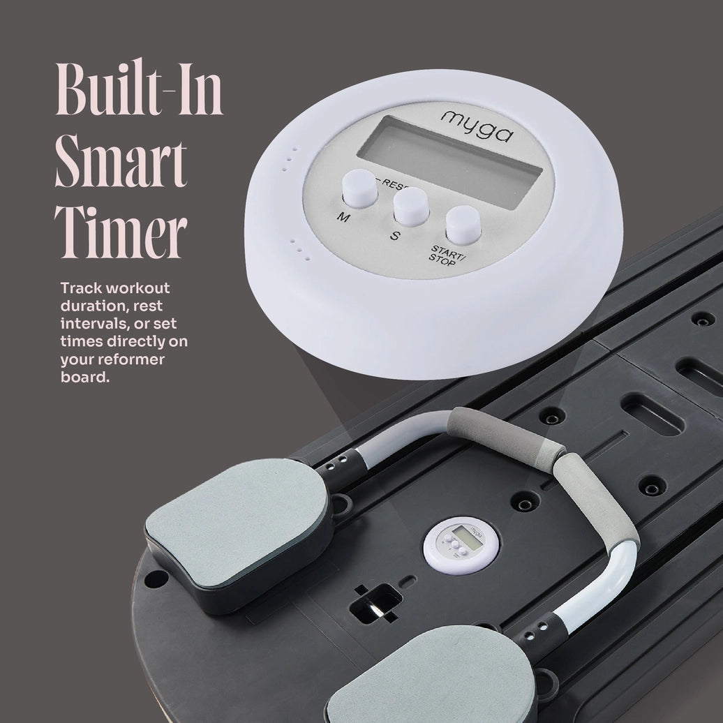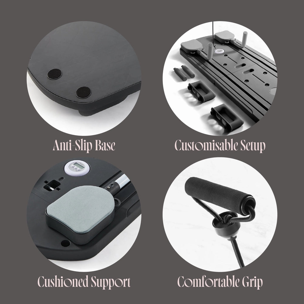 Få følelsen av ekte reformer-trening – rett hjem i stua. Med Myga Pilates Reformer Set kan du styrke kroppen, forbedre holdningen og få mer energi i hverdagen, uten stort og plasskrevende treningsutstyr.